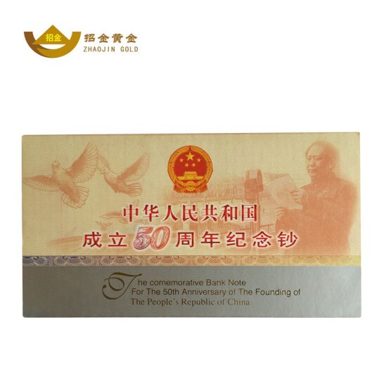 招金黃金 建國50周年紀念銀鑲金鈔50元